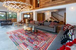 Designed for relaxed alpine living, the chalet boasts floor-to-ceiling windows, a cozy fireplace, a modern open-plan kitchen, and south-facing terraces to soak up the sun. Just a short walk or drive from Chamonix centre, Chalet Montana blends mountain charm with modern luxury.